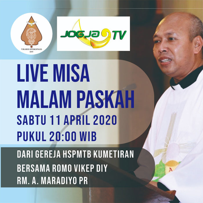 a. Sabtu, 4 April 2020: Perayaan Ekaristi akan dipimpin oleh Rm. Yohanes Rasul Edy Purwanto Pr (Vikaris Jendral KAS) pada pukul 17.00 WIB KLIK :