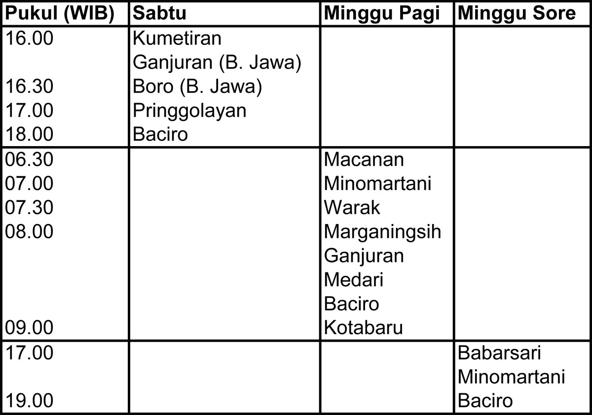 Minggu Pukul 08.00 WIB dan 18.00 WIB