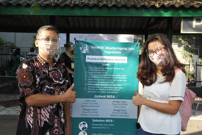 Dengan menerapkan prosedur kesehatan yang benar, dimulai dari sejak umat datang wajib menunjukkan kartu pass, dilanjutkan dengan pengecekan suhu tubuh menggunakan thermogun, cuci tangan menggunakan sabun dengan tetap menjaga jarak selama perayaan ekaristi, maka syukur kepada Tuhan ekaristi dapat berjalan dengan baik.