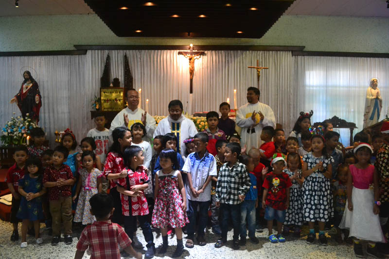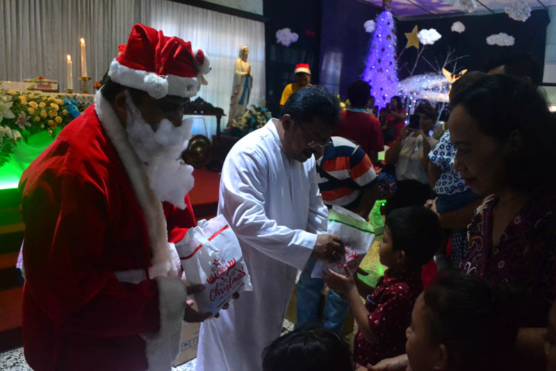 Sesaat sebelum misa selesai Romo Parman mengajak anak-anak untuk berkumpul di depan altar dan mengucapkan Selamat Natal kepada seluruh umat. Selanjutnya setelah perayaan ekaristi selesai, acara dilanjutkan dengan pembagian bingkisan kepada anak-anak. Romo Heri berperan menjadi Santa Claus yang membagikan bingkisan.